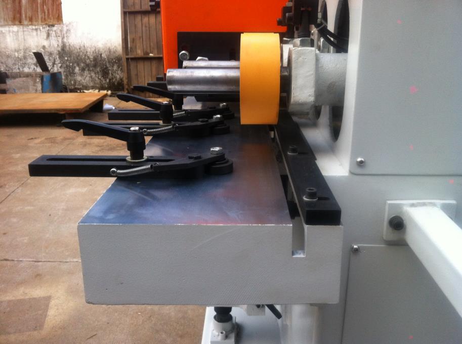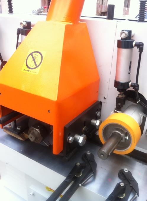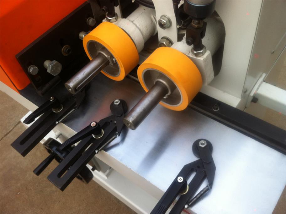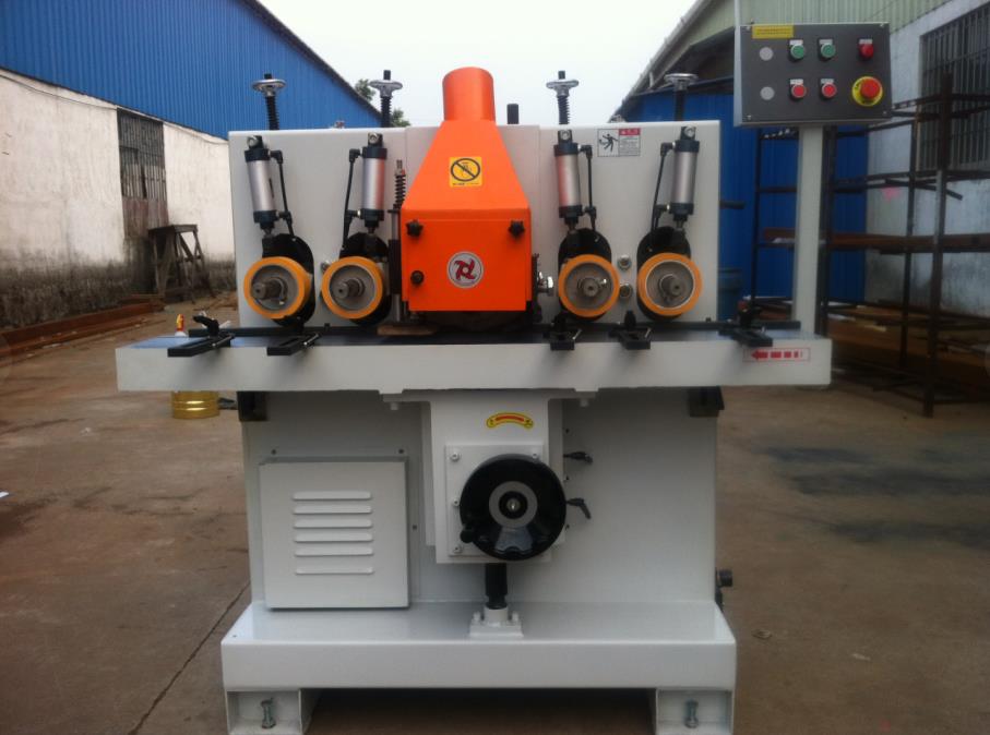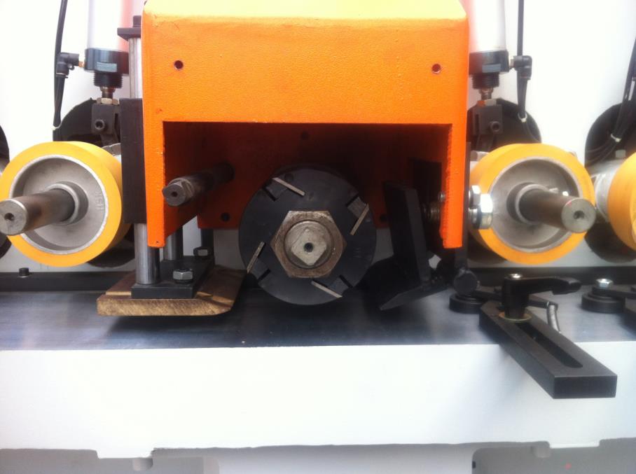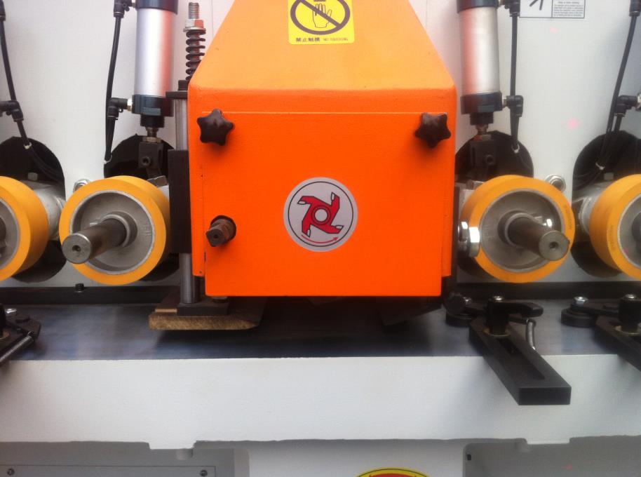 锐科155、154型木线机,是一款重型高效安全线条木线机,本设备适合各钟线条造型设备,如门套线、踢脚线、腰线、桑拿板、阳角线等一系列线条平面造型刨平设备,可根据产品刨削量选择5.5KW或4KW主轴电机,主轴转速达8000r/min刨削有效提高光洁度,省去后序因刨削出现表面粗糙的大工作量打磨工序,采用气缸橡胶轮压料和电鍍洛加工台面保证送料平稳,台面带有L槽如门套线L型线条不用垫模块也可以刨削,主轴采用40Φ轴稳定可装各种刀头、成型刀等一系列40Φ轴孔的刀具,主轴前后安装前后压料装置解决因刨削出现的前后啃头,主轴可以前后调节方便对刀,双电机设计保证主轴功率。