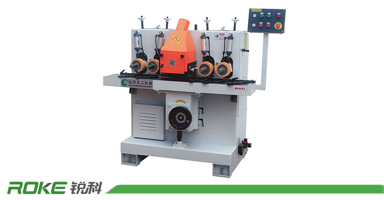 锐科155、154型木线机,是一款重型高效安全线条木线机,本设备适合各钟线条造型设备,如门套线、踢脚线、腰线、桑拿板、阳角线等一系列线条平面造型刨平设备,可根据产品刨削量选择5.5KW或4KW主轴电机,主轴转速达8000r/min刨削有效提高光洁度,省去后序因刨削出现表面粗糙的大工作量打磨工序,采用气缸橡胶轮压料和电鍍洛加工台面保证送料平稳,台面带有L槽如门套线L型线条不用垫模块也可以刨削,主轴采用40Φ轴稳定可装各种刀头、成型刀等一系列40Φ轴孔的刀具,主轴前后安装前后压料装置解决因刨削出现的前后啃头,主轴可以前后调节方便对刀,双电机设计保证主轴功率。